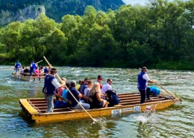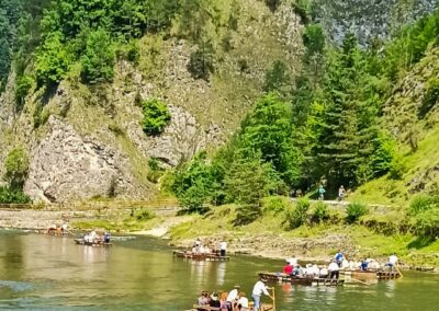1. Jedziemy do Sromowców, gdzie rozpoczyna się spływ na rzece Dunajec. Pilot załatwia wszystkie formalności związane z zakupem biletów i odprowadza grupę do przystani, gdzie czekają tratwy z flisakami. Spływ trwa ok. 2h i kończy się w Szczawnicy, gdzie grupę odbiera pilot i odprowadza do busa.